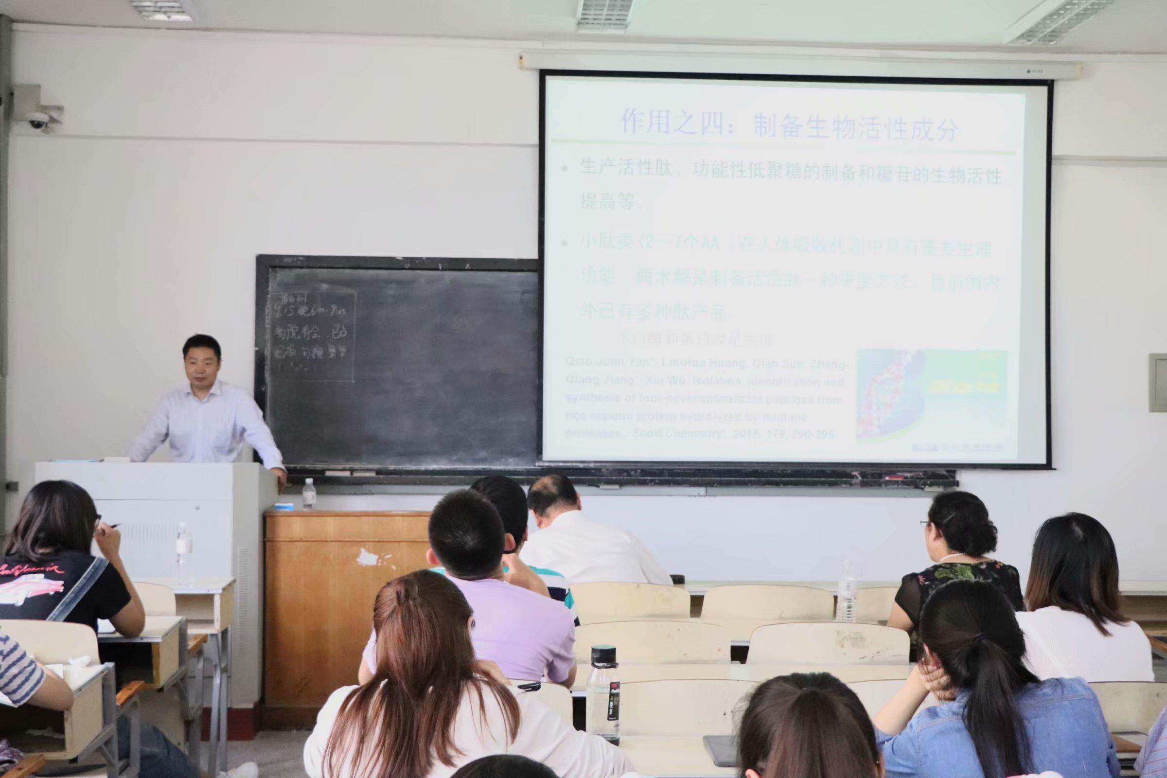 9月14日下午,中国农业大学食品学院副院长、博士生导师江正强教授应美女av 邀请,在博知楼301教室作了题为“酶制剂及其在食品行业中的应用及展望”的高端学术报告。这是夏季学期高端学术报告的第11场。美女av 党委书记薛冰主持了本次报告会,学院相关专业师生共计100余人参加了报告会。