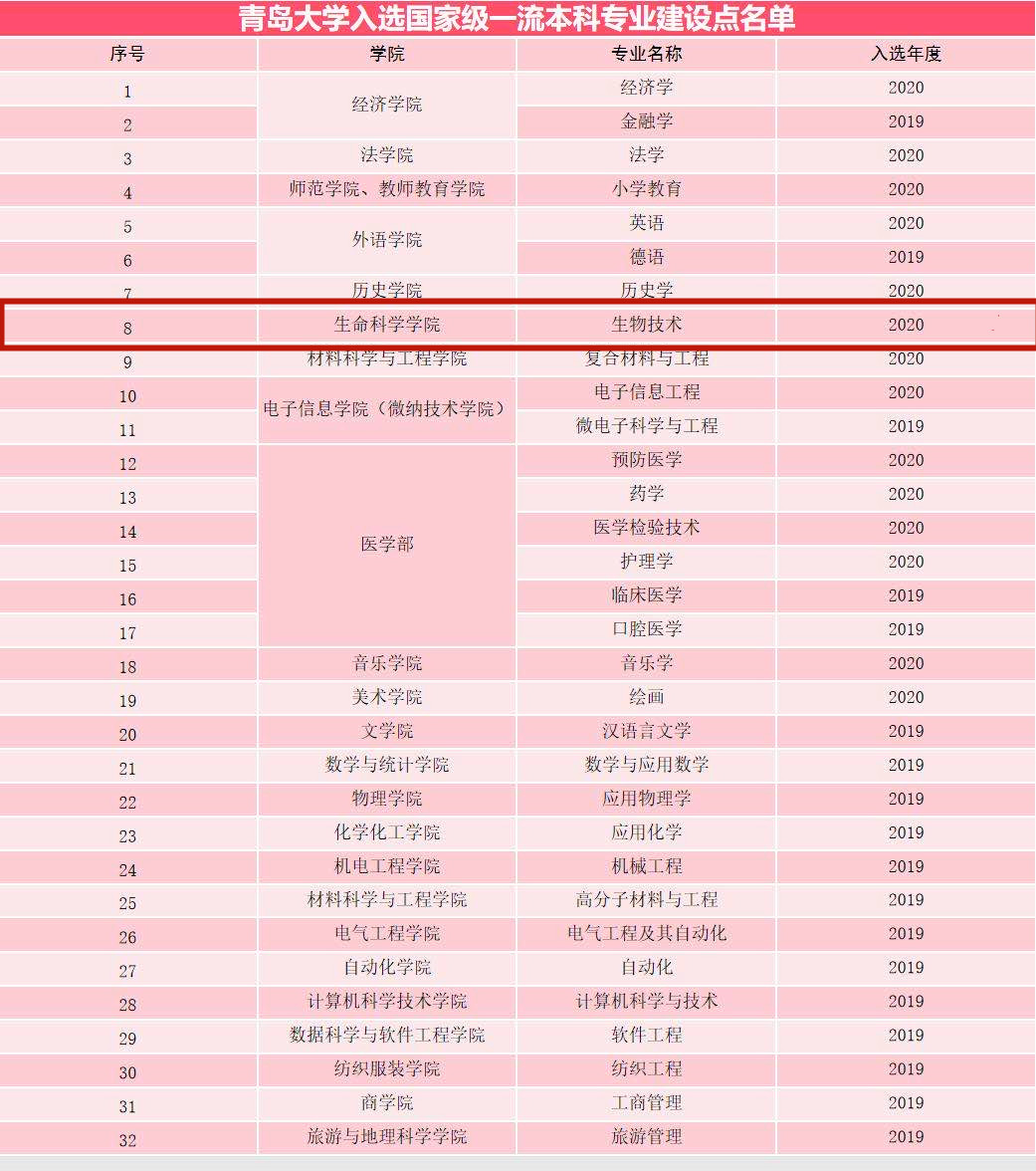 申报的生物技术专业成功入榜,获评为国家级一流本科专业建设点。