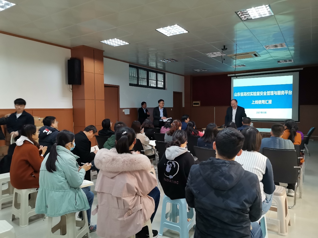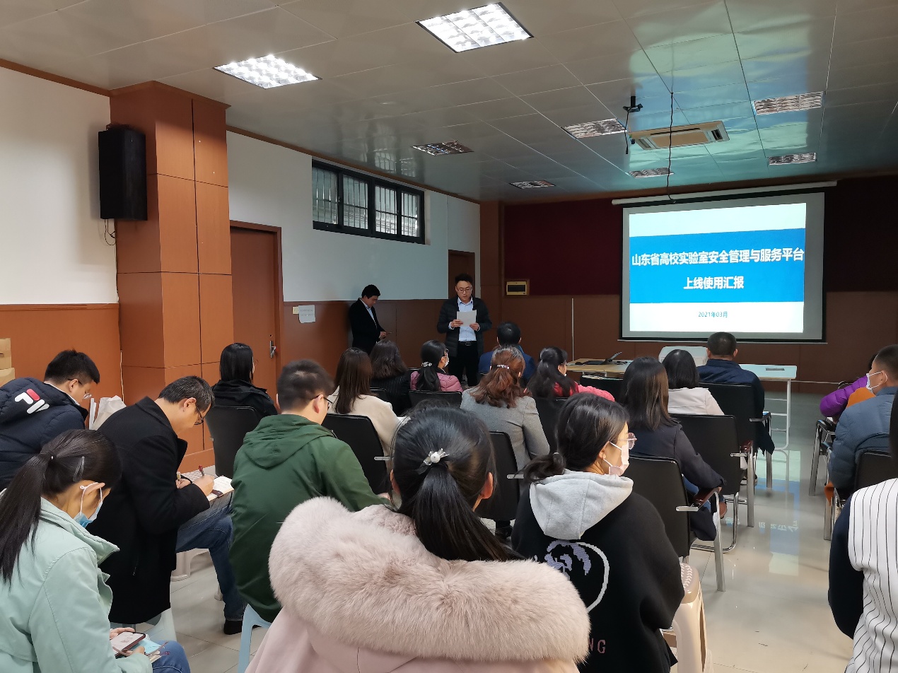 实验室管理处刘瑞璟老师来现场指导,高校实验室安全管理与服务平台工程师详细介绍了安全教育知识,列举各种案例介绍了易制毒、易制爆危化品的危险性,公安部门严格管控,以防各种安全隐患。平台工程师还针对平台管理和使用方法做了详细介绍,并现场答疑。