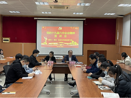 为深入学习贯彻党的十九届六中全会精神,进一步推进全会精神的示范引领和践行落实。12月9日下午,学院在博雅楼103会议室举行党的十九届六中全会精神宣讲会,学院党委书记薛冰为全院教职工做主题宣讲。