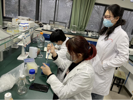 图 留校保障实验室安全管理和保障学生实验开展的郭群群老师指导学生开展实验