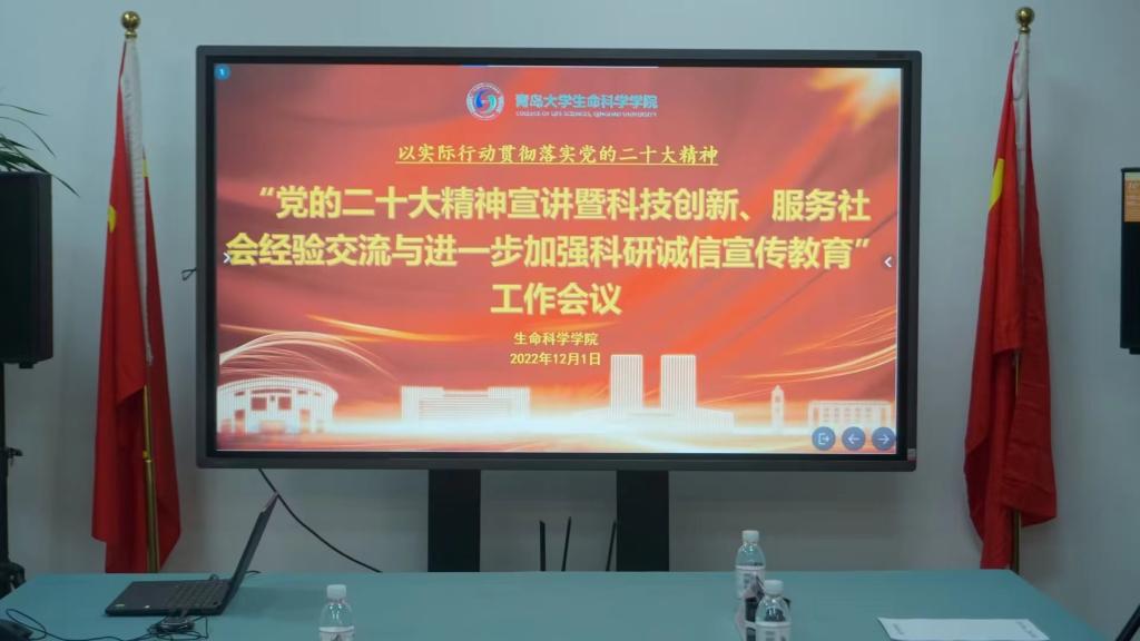 于12月1日下午14:30,在博雅楼301会议室召开了“党的二十大精神宣讲暨科技创新、服务社会经验交流与进一步加强科研诚信宣传教育”工作会议。学院党委书记薛冰、党委副书记、院长许元红教授分别结合党的二十大精神的宣讲、学习,传达了“美女av