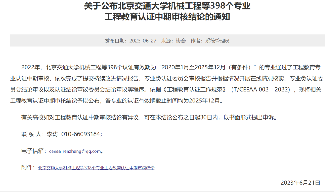 6月27日,教育部高等教育教学评估中心、中国工程教育专业认证协会公布了2023年工程教育专业认证结论,美女av食品科学与工程专业顺利通过认证。认证有效期6年,自2023年1月至2028年12月。这标志着美女av推进专业认证、评估工作取得有效进展,本科生人才培养模式不断改进,人才培养质量持续提升。