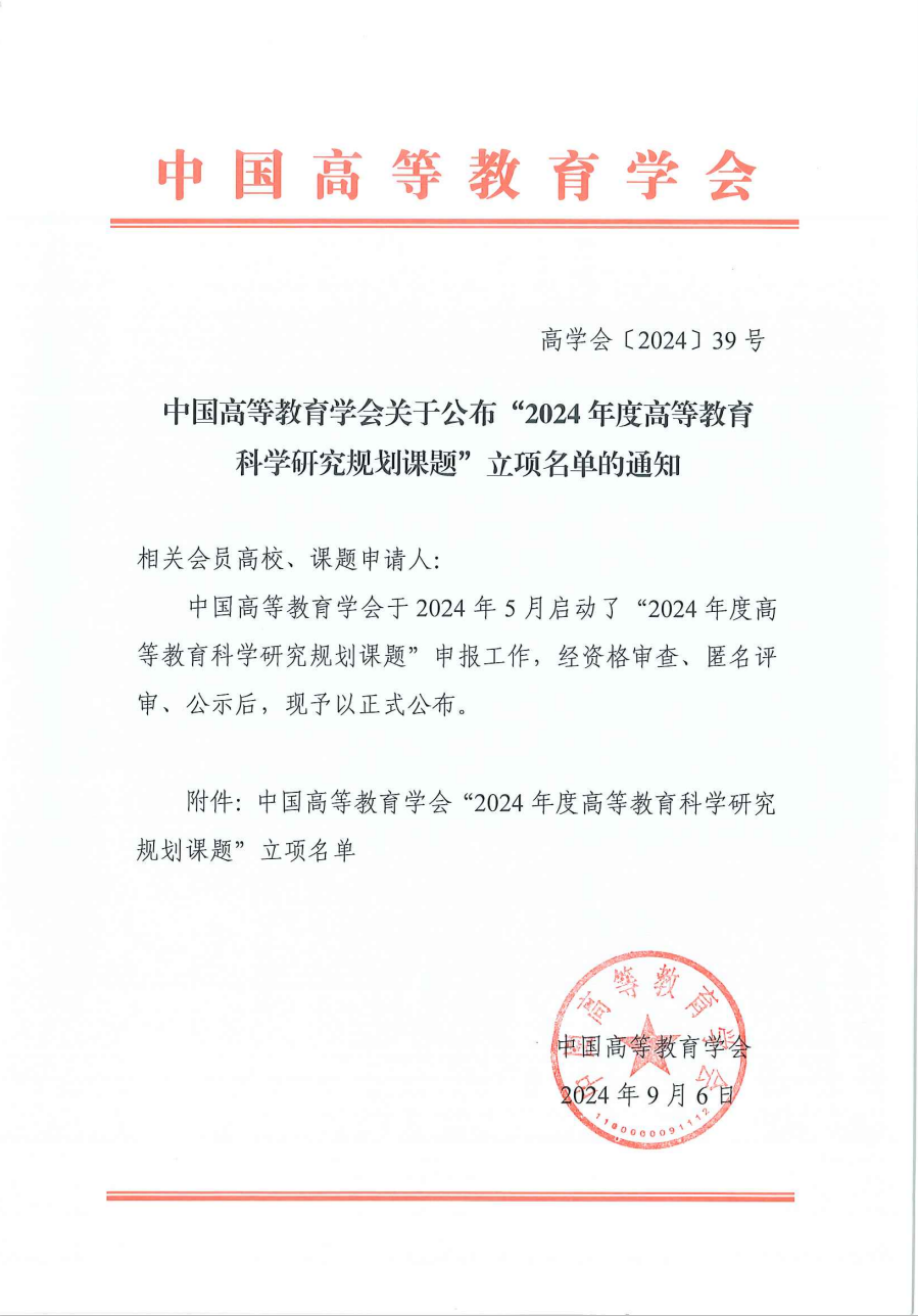 9月6日,中国高等教育学会公布了“2024年度高等教育科学研究规划课题”立项名单,美女av