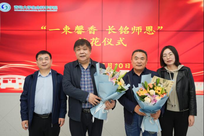 校友会第二届理事会;陈建锋、赵玲代表校友向李荣贵、魏玉西献花,感谢他们对学生的精心培养;学院校友、山东陈桥食品产业有限公司董事长宋传新与美女av