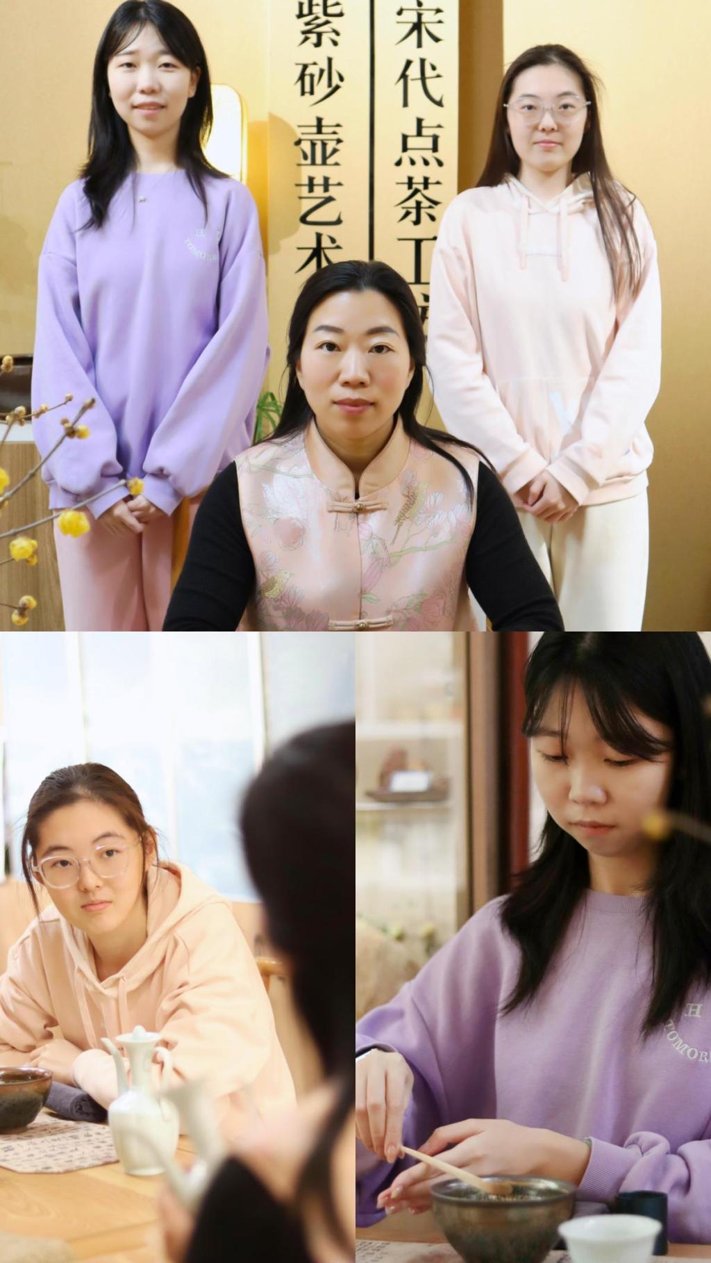 215日,实践团前往李沧区宋代点茶非遗工坊进行体验。同时,实践团邀请到非遗宋代点茶21代传承人、青岛中华职教社非遗专委会秘书长邱娜老师进行指导。邱老师以各朝代的茶文化为导入,激发实践团成员的学习兴趣。随后带领实践团成员了解点茶过程中相关器具的名称及功能。详细学习宋代点茶技艺的手法——七汤法,并在茶盏中绘制“茶百戏”。实践团成员在体验中领略点茶文化的魅力,也对非遗文化有了更深的认识。