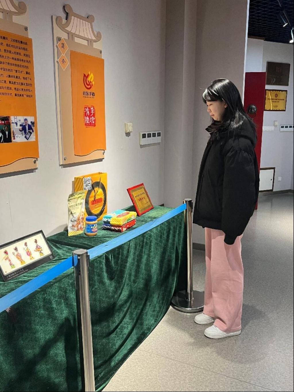 214日,实践团前往李沧区非物质文化遗传博物馆进行参观学习。李沧区非物质文化遗传博物馆为山东省首家区级非遗专题博物馆,位于李沧区文化馆内,展厅面积420平方米,馆内以实物、模拟实景等方式展示着李沧区现有的非物质文化遗产项目,分别有庙会、拳术、传统戏剧、够级扑克、熏画、古彩戏法等十余个展区,200余件展品、近百幅照片和大量的文字介绍,代表性展品包括“李村大集”民俗模型、即墨花边编织工艺、胶东剪纸等。