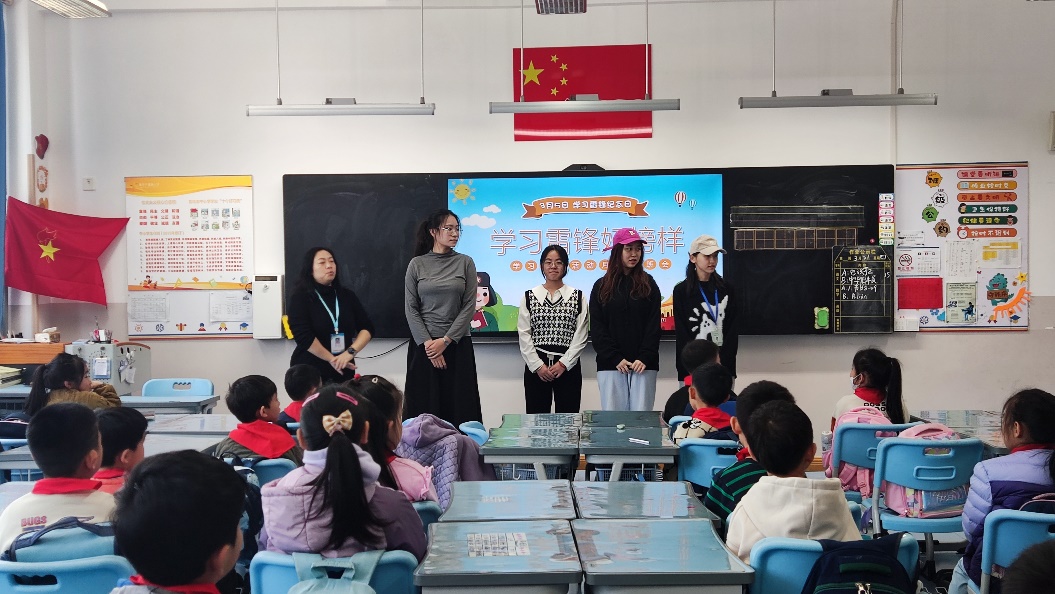 青锐志愿服务队的部分志愿者在学院党委副书记张雪蕾、团委马国成老师的指导和带领下,前往青岛宁德路小学二年级三班开展“雷锋精神进小学”志愿宣讲活动。