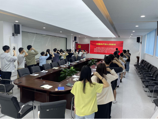 2023届毕业生党员文明离校倡议书》,倡议毕业生党员饮水思源,情系母校、文明离校、执炬奔跑,砥砺奋进,充分发挥党员模范先锋作用,践行初心使命、积极担当作为,使党员这张名片更加绽放光芒。2019级食品科学与工程本科生赵安冉带领全体毕业生党员面向鲜红的党旗高举右手,重温对党忠诚的铮铮誓言,表达了坚定理想信念,践行使命担当的信念,始终铭记“明德 博学 守正 出奇”校训,传承“崇德守正 活力奋进”的院训精神和强化学习工作和实干争先的信心与决心。