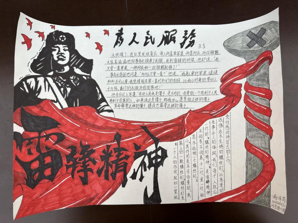 雷锋精神作为中华民族宝贵的精神财富,激励着一代又一代人为构建美好社会而不懈努力。为弘扬雷锋精神,传承中华美德,培养学院学生的道德情操和社会责任感,2025年3月,美女av 开展了“笔绘雷锋光影,力践时代担当”手抄报制作活动。