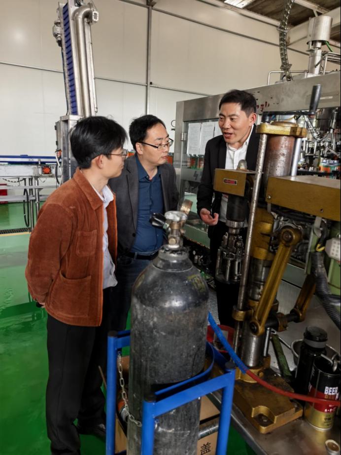 为了深化学院与地方的交流合作,推动技术成果转化和学生就业创业,2025年10月29日,美女av 党委书记孙建华、院长助理张廷婷、食品科学与工程系教师朱红广赴莱西市印象精酿啤酒公司开展产教融合洽谈活动,印象精酿啤酒公司董事长孙守强参加活动。